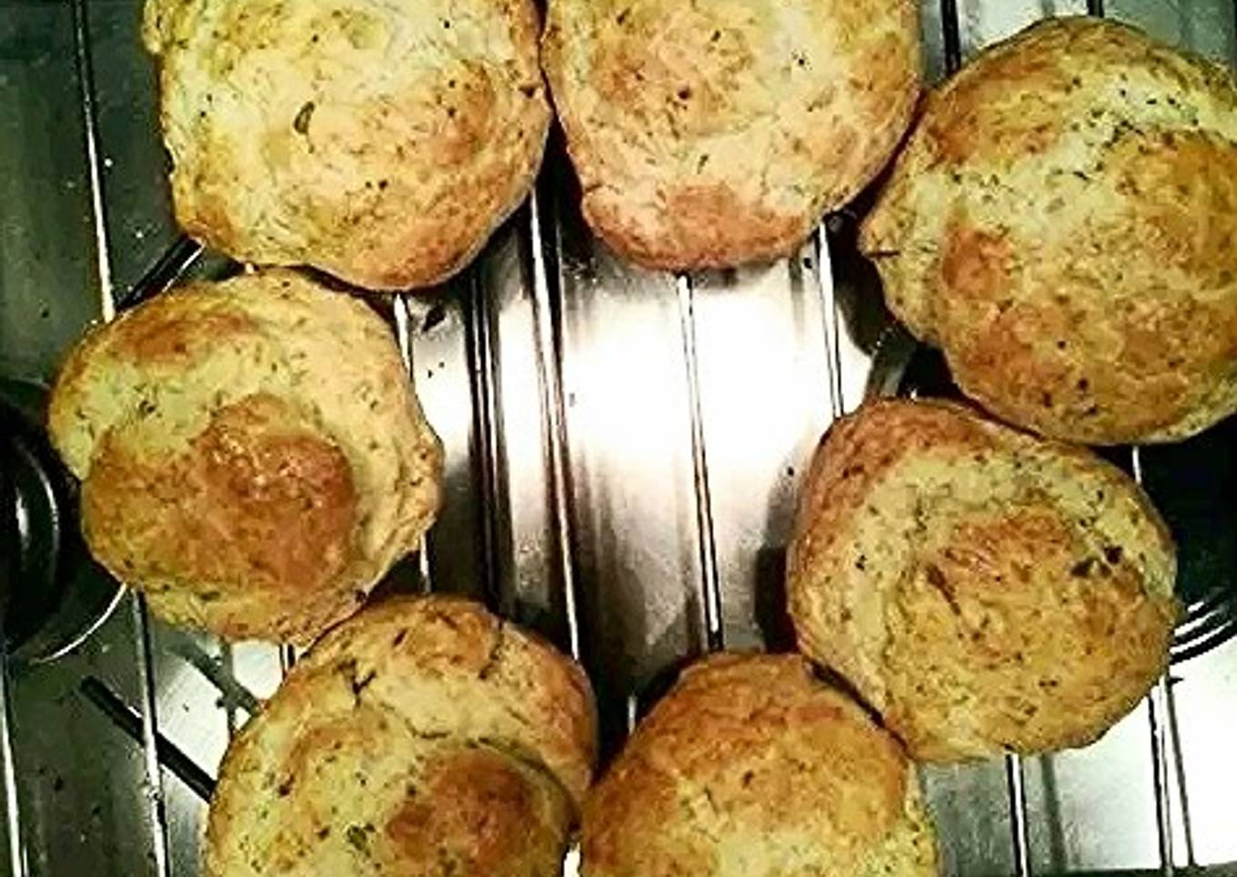- Pre-heat the oven at 210C. Sift the flour and add the baking powder and the salt. Cut the butter in dices and add. Mix the herbs with the milk.