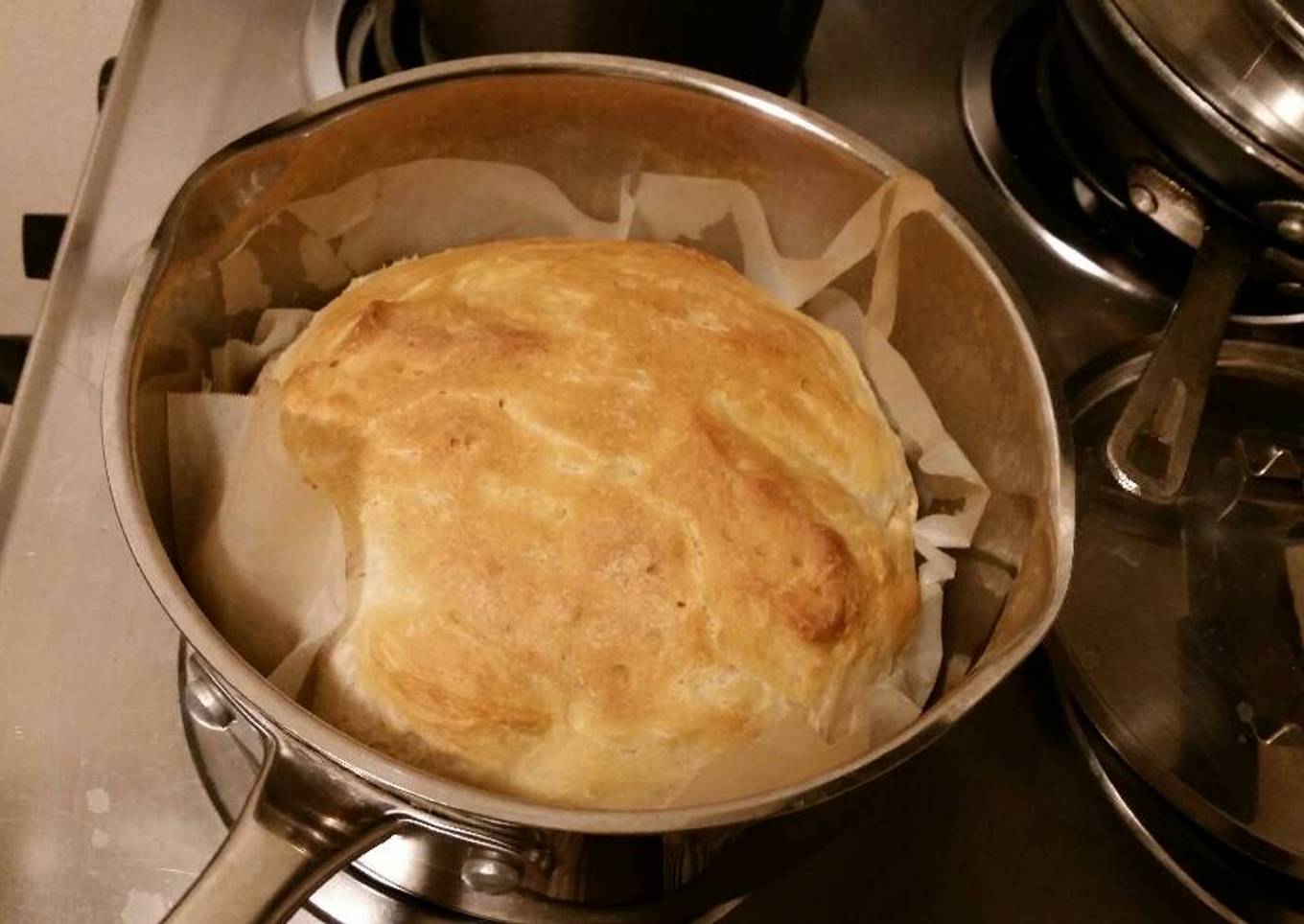 - Add some oil to the sides and roll the ball of dough as before. Taking a CLEAN pr of kitchen shears, dip them in oil first, shaking off the excess, and use them to make cross cuts on top. Place it into the LINED 3 qt saucepan and boil water in a smaller saucepan.