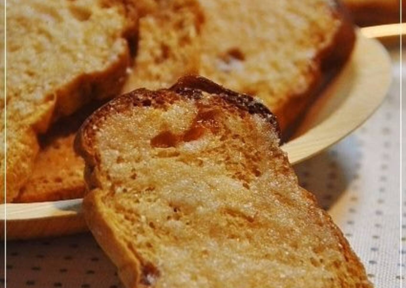 - Thinly slice the brown sugar honey bread. It's best if you can slice it into 25 ~ 30 pieces.